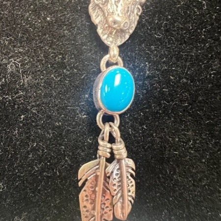 • Sterling Silver Buffalo Head Turquoise Pendant Necklace