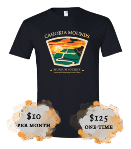 With a monthly gift of at least $10 you will receive a limited edition Cahokia Mounds Society T-shirt that will only be available to our Fund Drive Donors as a thank you for your continued dedicated support.
