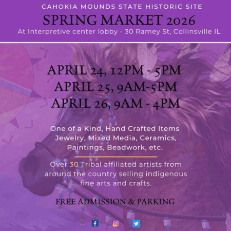The Cahokia Mounds Interpretive Center (Museum) and Gift Shop remain closed for the rest of 2023 and likely into 2024 due to major on-going mechanical renovations. Generous support from friends like you allow the Cahokia Mounds Museum Society (CMMS) to maintain their mission of advancement in preservation and interpretation at Cahokia Mounds.